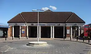 As linhas de ônibus de Londres 32, 79, 107, 113, 142, 186, 204, 221, 240, 251, 288, 292, 303, 340, 384 e as linhas noturnas N5, N16 e N113 e as linhas de ônibus fora de Londres 614[1] e 644 servem a estação e o terminal de ônibus.