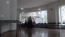 O espaço é todo envidraçado, o que permite que as pessoas que passam pela rua possam visualizar as aulas de dança que estão sendo realizadas no local. A dança de salão é o ritmo que embala os alunos.[1]