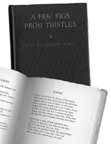 O seu poema mais famoso será provavelmente First Fig extraído de A Few Figs from Thistles (1920):