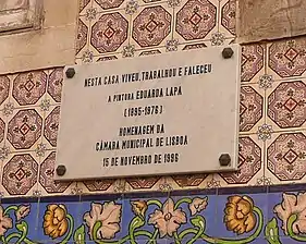 - Foi descerrada, pela Câmara Municipal de Lisboa, uma lápide no prédio, onde a pintora viveu e faleceu, na Rua Capitão Renato Baptista.[carece de fontes]