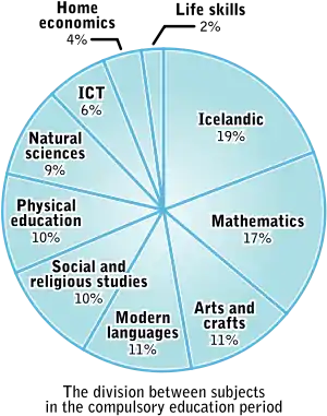 | “ | Um princípio fundamental do sistema educacional islandês é o de que todos devem ter oportunidades iguais para adquirir uma educação, independentemente do sexo, posição econômica, localização residencial, religião, possíveis deficiências e, formação cultural ou social.[5][6] | ” |