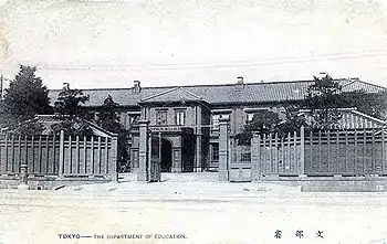 Em 1871, o Ministério da Educação japonês foi estabelecido, com um sistema escolar baseado fortemente no modelo estadounidense, que promovia um currículo utilitário, mas com o sistema de administração escolar centralizado copiado da França. Com a ajuda de conselheiros estrangeiros, como David Murray e Marion McCarrell Scott, também foram criadas Escolas Normais para formação de professores em cada prefeitura. Outros conselheiros, como George Adams Leland, foram recrutados para criar tipos específicos de currículo.