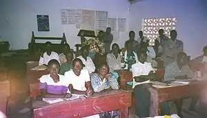 O governo estabeleceu o ensino primário gratuito para todas as crianças, em 1994, o que aumentou as taxas de atendimento, segundo a UNICEF.[2] Em 1994, a taxa de matrícula bruta primária foi 133,9 por cento, e a taxa de inscrição primária líquida foi de 102,6 por cento. [2] Em 1995, 62 por cento dos estudantes que entraram na escola primária atingiu grau dois, e 34 por cento chegou a grau cinco.[2] A taxa de abandono é maior entre meninas do que meninos.[2]