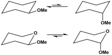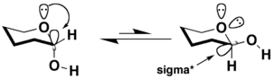 Uma explicação amplamente aceita é que existe uma interação estabilizadora (hiperconjugação) entre o par de elétrons não compartilhados no heteroátomo (o endocíclico em um anel de açúcar) e o orbital σ * da ligação C-X axial (exocíclica). Isso faz com que a molécula alinhe o par solitário doador de elétrons antiperiplanar (180 °) ao orbital σ *, diminuindo a energia geral do sistema e causando mais estabilidade. [4]