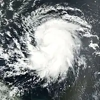 O furacão adentrou o Caribe através do canal de Santa Lúcia, entre a ilha de mesmo nome e Martinica na manhã de 17 de agosto como um furacão de categoria 2 na Escala de furacões de Saffir-Simpson, com ventos de 165 km/h.[14]