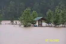 Um edifício residencial no condado de Cherokee teve vários danos devido às enchentes, forçando a retirada de pessoas através de botes. O nível da água chegou ao primeiro andar do complexo de apartamentos. Além disso, comércios e hotéis foram inundados ao longo da Interstate 575, perto da Georgia State Route 92. Cerca de 15 residências sofreram sérios danos na área. A represa de Noonday chegou ao nível recorde de 5 m acima do nível normal por volta do meio-dia (UTC) de 11 de Julho, batendo o recorde anterior de 4,2 m em 17 de Setembro de 2004 durante a passagem do furacão Ivan. Pelo menos uma rodovia no condado foi fechada devido ao alto nível das águas. Os danos no condado de Cherokee foram estimados em 1,6 milhões de dólares (valores em 2005), principalmente devido aos danos no edifício de apartamentos.[17]