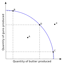 A Eficiência produtiva ocorre quando a economia está operando na sua fronteira de possibilidades de produção (FPP). Isso acontece quando a produção de um bem é obtida ao menor custo possível, dadas a produção do(s) outro(s) bem(ns). Na qual operando dentro das restrições da tecnologia industrial atual não pode aumentar a produção de um bem sem sacrificar a produção de outro bem.[1]
