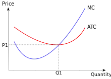 No equilíbrio de longo-prazo para mercados perfeitamente competitivos, isso é onde o custo médio está no ponto mais baixo na curva de custo médio.