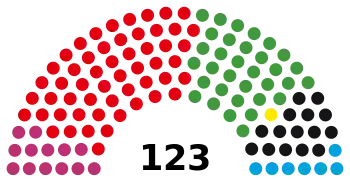 | 23 de fevereiro de 2020 Serão eleitos para os 121 lugares no Parlamento Precisa-se de 61 lugares para obter a maioria | ||||