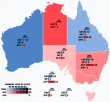Resultado da votação primária por estado e território nas eleições federais australianas de 2007