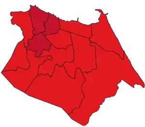 No primeiro turno das eleições de Fortaleza, o candidato Elmano de Freitas (PT) conseguiu vencer na maioria dos bairros da capital, contando 51 bairros. Heitor Férrer (PDT), terceiro colocado na disputa, teve o segundo melhor desempenho neste aspecto, vencendo em 27 bairros. Roberto Cláudio (PSB) obteve a segunda maior votação, mas por bairro ele venceu em 19.[19] Os demais candidatos não venceu em nenhum bairro.