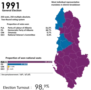 - «ALBANIA: parliamentary elections Kuvendi Popullor, 1991». archive.ipu.org. Consultado em 29 de maio de 2022