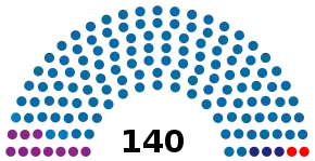 Todos os 140 assentos do Parlamento da Albânia 71 assentos necessários para maioria | |||||||||||||||||||||||||||||||||||||||||||||