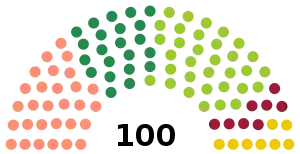 | Partido | Votos | % | Cadeiras | +/– | |