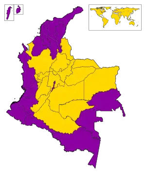 Os presidentes colombianos são eleitos para mandatos de quatro anos usando um sistema de dois turnos; se nenhum candidato obtiver a maioria dos votos no primeiro turno, um segundo turno é realizado entre os dois candidatos mais votados.[1] O vice-presidente é eleito na mesma chapa que o presidente. Os presidentes são limitados a um único mandato de quatro anos e o artigo 191 da Constituição exige que os candidatos sejam colombianos de nascimento e tenham pelo menos trinta anos de idade.