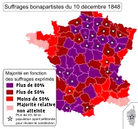 Louis Bonaparte não teve uma longa carreira política. A ala monarquista (partidários das famílias reais legitimistas ou orleanistas ) e grande parte da classe alta o apoiavam como o candidato "menos pior", como um homem que restauraria a ordem, acabaria com a instabilidade na França que havia continuado desde a derrubada de a monarquia durante a Revolução de fevereiro naquele ano, e impedir uma revolução proto-comunista (no estilo de Friedrich Engels ). Uma boa proporção da classe trabalhadora industrial, por outro lado, foi conquistada pelas vagas indicações de Louis-Napoleão sobre prováveis visões econômicas progressistas. A sua vitória esmagadora deveu-se sobretudo ao apoio das massas rurais não politizadas, para as quais o nome de Bonaparte significava algo, em oposição aos outros contendores pouco conhecidos.[3]