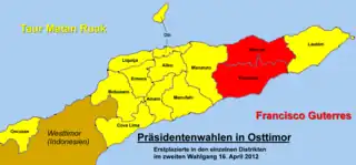 A eleição presidencial timorense de 2012 foi realizada em duas voltas, em 17 de março e 16 de abril.[1] Foi a 3ª eleição presidencial do país após a independência em 2002.