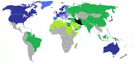 Em 20 de junho, cerca de 90 000 pessoas se concentraram na periferia de Paris, em Villepinte (Seine-Saint-Denis), para uma manifestação de solidariedade com os movimentos de protesto no Irão. O encontro foi organizado por membros da oposição iraniana no exílio, destacando-se os partidários da Organização dos Mujahidin do Povo Iraniano (OMPI) (cuja base fica em Auvers-sur-Oise, Val-d'Oise) e do Conselho Nacional da Resistência Iraniana (CNRI) - ambos adversários da teocracia iraniana. Muitas pessoas vieram também da Alemanha, da Bélgica e dos Países Baixos, de carro ou de ônibus. Outros grupos de exilados organizaram manifestações pela Europa. Em Bruxelas, no mesmo dia, 300 pessoas protestaram em frente à embaixada do Irã.[37] Houve também protestos diante das embaixadas iranianas de Tóquio, Brisbane e Sydney.[38]