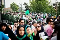 Grandes concentrações populares tiveram início em 13 de junho, quando o resultado final foi anunciado. Centenas de pessoas, muitas ostentando símbolos do "movimento verde" de Mousavi, protestaram contra o resultado da eleição, nas ruas de Teerã e outras cidades do país. Aos gritos de "O governo mente para o povo" e "Onde está o meu voto?," atearam fogo a pneus, bloquearam vias e houve choques com a polícia.