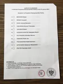 - «Wybory Prezydenta Rzeczypospolitej Polskiej w 2020 r.». prezydent20200628.pkw.gov.pl (em polaco). Consultado em 26 de fevereiro de 2023