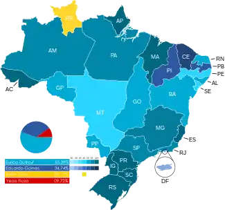 | Ceará | 108 363 | 37.94% | 164 682 | 57.66% | 12 543 | 4.39% | 7 | 0.00% | 285 595 | |