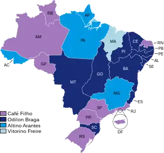 | Estados/Territórios vencidos por Café Filho |