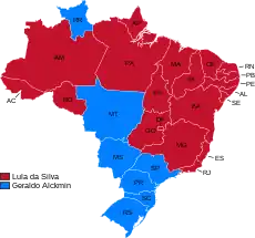 | Candidato mais votado no 2º turno por unidade federativa. | ||||
