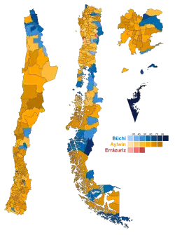 Na quinta-feira, 14 de dezembro de 1989, os chilenos elegeram democraticamente seu novo presidente, com o seguinte resultado: 55,2 % dos votos para Aylwin, 29,4 % para Büchi e 15,4 % para Francisco Javier Errázuriz.