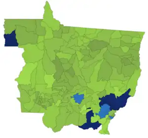 | Jayme (DEM) | Leitão (PSDB) | Mauro (PSOL) | Fávaro (PSD) | Arruda (PSL) | Maria (PCdoB) | Sachetti (PRB) | Caldas (NOVO) | Lopes (PSOL) | Carlos (REDE) | Leite (PPL) | |||||