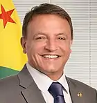 Nascido em Cruzeiro do Sul, o engenheiro civil Gladson Cameli é formado no Instituto Luterano de Ensino Superior de Manaus e exerceu a profissão em empresas de sua família. Sobrinho de Orleir Cameli,[8] militou em duas outras legendas, mas foi ao ingressar no PP que iniciou sua carreira política ao eleger-se deputado federal em 2006 e 2010 e senador em 2014.[9] Foi a primeira vez que os acrianos elegeram um senador cujo partido tem ligações com a ARENA e o PDS, legendas que sustentaram os Governos Militares, desde as vitórias de José Guiomard e Jorge Kalume em 1978.[10][nota 3]