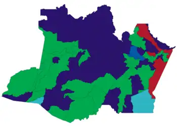 | Candidato mais votado por município no 2º turno (62): Amazonino Mendes (45) Wilson Lima (17) | ||||