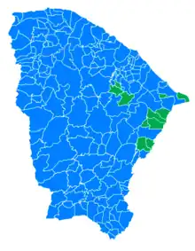 | Candidato mais votado por município no 1º turno (184): Tasso (162) Gonzaga Mota (21) José Airton (1) | ||||