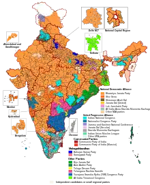 O partido de Narendra Modi, o Partido Bharatiya Janata, venceu as eleições, controlando a maioria dos assentos no parlamento indiano.[9]