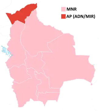 | Vencedor em | La Paz Cochabamba Santa Cruz Oruro Potosí Chuquisaca Beni Tarija |