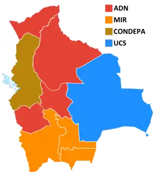 | Vencedor em | Cochabamba Oruro Beni Pando |