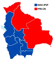 | Vencedor em | La Paz Cochabamba Oruro Potosí Chuquisaca Tarija |