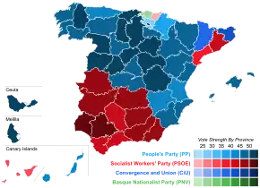 | Partido Socialista Operário Espanhol | 266 738 | 37,99 / 100,00 |