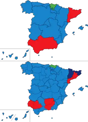 | Comunidade autónoma | PP | PSOE | IU | CiU | PNV | BNG | CC | PA | ERC | ICV | EA | CHA | D | Votantes | ||||||||||||