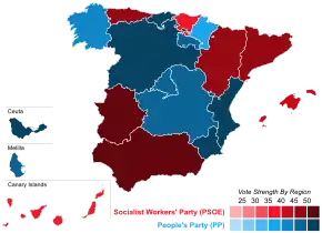 | Partido Socialista Operário Espanhol | 11 289 335 | 43,87 / 100,00 |