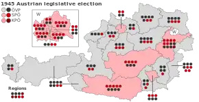 O Partido Popular Austríaco, o herdeiro do antigo Partido Social Cristão, obteve uma vitória decisiva com um resultado perto dos 50% e conquistando a maioria parlamentar. Apesar disto, o governo de grande coligação com os socialistas e comunistas foi mantido.