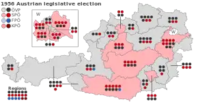 As eleições legislativas austríacas de 1956 foram realizadas a 13 de Maio. Os resultados deram a vitória ao Partido Popular Austríaco, que, ficou a um deputado da maioria absoluta. O Partido Popular Austríaco decidiu continuar num governo de coligação com o Partido Socialista da Áustria, com Julius Raab a continuar como chanceler [1].