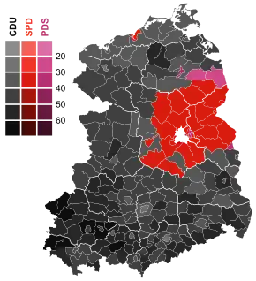 O Partido do Socialismo Democrático, sucessor do Partido Socialista Unificado da Alemanha, consegui ser o terceiro partido mais votado, conquistando 16,4% dos votos e 66 deputados, numa campanha em que pediu a preservação do estado social da RDA[2].