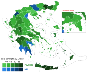 | Movimento Socialista Pan-helénico | 3 012 542 | 43,92 / 100,00 |