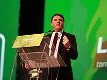 No início de 2017, em oposição às políticas de Renzi, alguns democratas de esquerda liderados por Pier Luigi Bersani, Massimo D'Alema e Roberto Speranza lançaram, juntamente com dissidentes da Esquerda Italiana, o Movimento Democrático e Progressista (MDP).[37][38][39] Em abril, Renzi foi reeleito secretário-geral do Partido Democrático e, com isso, escolhido o candidato do partido para o cargo de primeiro-ministro, derrotando o ministro da Justiça Andrea Orlando e o Governador da Apúlia Michele Emiliano.[40][41][42]