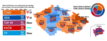 Os grandes vencedores da noite foram os dois novos partidos de centro-direita, TOP 09 e Assuntos Públicos, que entraram no parlamento com 16,7% e 10,9% dos votos respetivamente[1].
