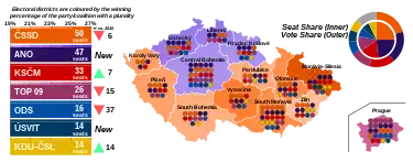 Por outro lado, o TOP 09 e o Partido Democrático Cívico (ODS), partidos que compuseram a coalizão governista que governou a República Checa entre 2010 e 2013, sofreram duras derrotas eleitorais após perderem ao todo 52 assentos, inviabilizando a continuidade do governo. Após as eleições, ČSSD, ANO e o KDU-ČSL chegaram a um acordo para formar uma nova coalizão que fornecesse sustentação política a um novo governo e Bohuslav Sobotka tornou-se o novo primeiro-ministro do país.[3]