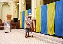 As eleições na Ucrânia são realizadas para escolher o presidente (chefe de estado) e Verkhovna Rada (legislatura). O presidente é eleito por um mandato de cinco anos. A Verkhovna Rada tem 450 membros e também é eleita para um mandato de cinco anos, mas pode ser dissolvida mais cedo pelo presidente em caso de falha na formação de um governo.[1][2] A próxima eleição para a Verkhovna Rada (marcada para 2023) será pela primeira vez com diferentes listas abertas regionais (novamente com um limiar eleitoral de cinco por cento) e um retorno (e, portanto, a abolição dos círculos eleitorais com votação anterior) a apenas um círculo eleitoral nacional.[3][4]