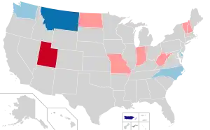 | Incumbente democrata Incumbente republicano Democrata que não é candidato à reeleição Republicano que não é candidato à reeleição | |
