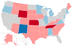 | Incumbente democrata Incumbente republicano Vago Democrata que não é candidato à reeleição Republicano que não é candidato à reeleição Libertário que não é candidato à reeleição | |