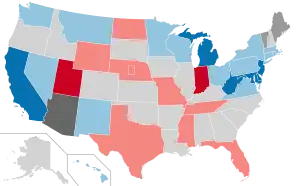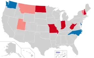 | Incumbente democrata Incumbente republicano Vago Democrata que não é candidato à reeleição Republicano que não é candidato à reeleição | |